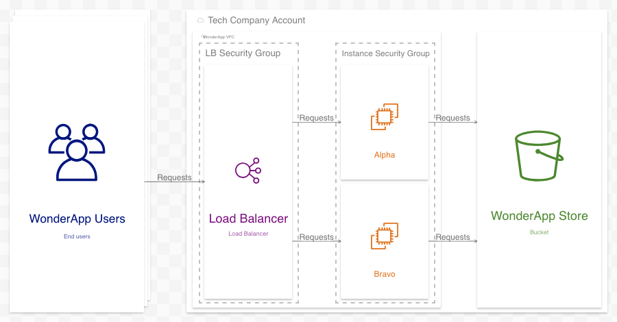 This one is as straightforward as it is common: unlabeled arrows are almost always wrong. An unlabeled arrow tells the viewer that two resources are somehow related but not precisely how. Unlabaled arrows undeniably violate the “strive to honestly inform” principle.